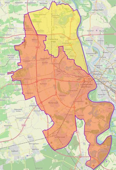 • Die Sperrzone II (Infizierte Zone, gelb): Das Gebiet umfasst Teile der Stadt Ludwigshafen (BASF-Werksgelände, bebaute Ortslage Oppau, ganzer Stadtteil Edigheim), die bebaute Fläche der Stadt Frankenthal sowie die östlich davon gelegenen Freiflächen des Stadtgebietes, sowie die Gemeinden Beindersheim, Großniedesheim, Kleinniedesheim, Bobenheim-Roxheim.