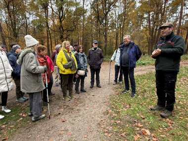Sven Ofer, Forstwirt in der Verbandsgemeinde Römerberg-Dudenhofen, Natur- und Landschaftspfleger (Ranger) sowie aktives Mitglied im Natur- und Vogelschutzverein Dudenhofen und im Waldbauverein Ganerb, führte dabei die Wandergruppe an und erläuterte die Besonderheiten und Geschichte der einzelnen Stationen. Landrat Körner steuerte dabei zahlreiche Anekdoten – unter anderem aus seiner Zeit als Bürgermeister der Gemeinde – bei.