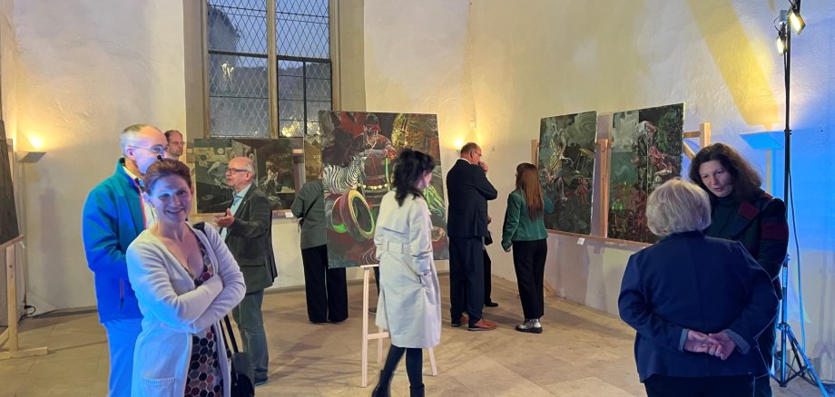 Der Landrat des Saalekreises, Hartmut Handschak, eröffnete am 10. Oktober 2025 im Beisein des Kulturleiter des Rhein-Pfalz-Kreises, Paul Platz, in der Burgkirche der Burg Querfurt die neue Ausstellung, die anlässlich des Jubiläums „35 Jahre Partnerschaft zwischen dem Rhein-Pfalz-Kreis und dem Saalekreis“ initiiert wurde. Zu sehen sind Werke der Künstler Dimana Wolf und Hans-Christoph Rackwitz.